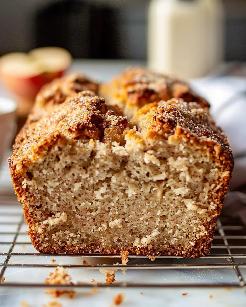 Slide your loaf pan into the preheated oven and let it bake for about 55-60 minutes, or until a toothpick inserted into the center comes out clean. The smell will have the whole house buzzing with warmth and comfort. Once baked, remove the apple bread from the oven and let it cool in the pan for about 10 minutes before transferring it to a wire rack. This helps set the texture perfectly.