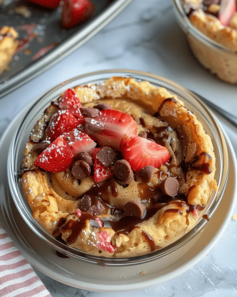 Here comes the fun part! Personalize your baked protein pancake bowls by adding your favorite toppings. Think fresh berries, sliced almonds, a drizzle of maple syrup, or even a dollop of Greek yogurt on top! This is your chance to tailor your breakfast experience to suit your mood. Here’s a quick list of topping ideas: