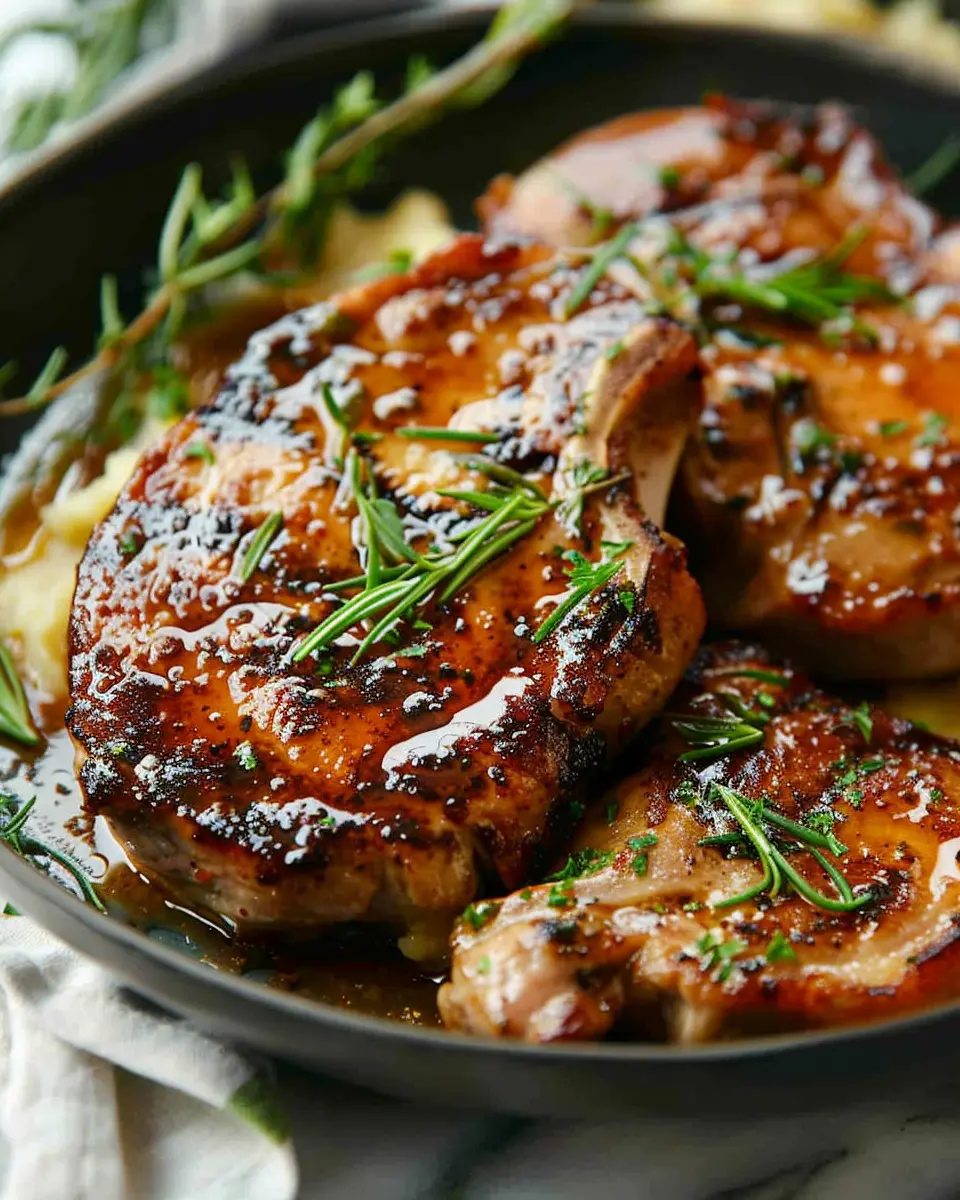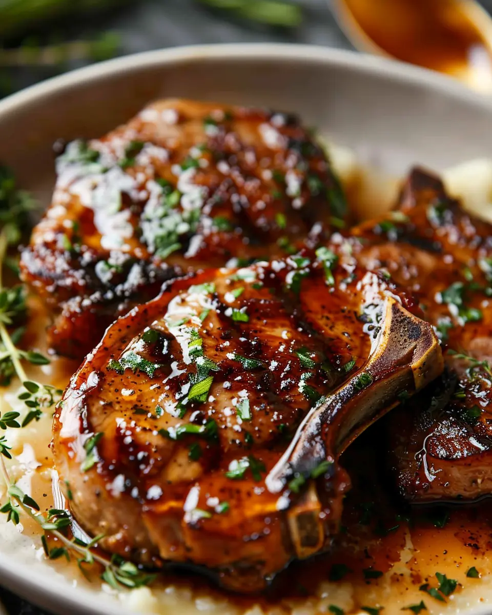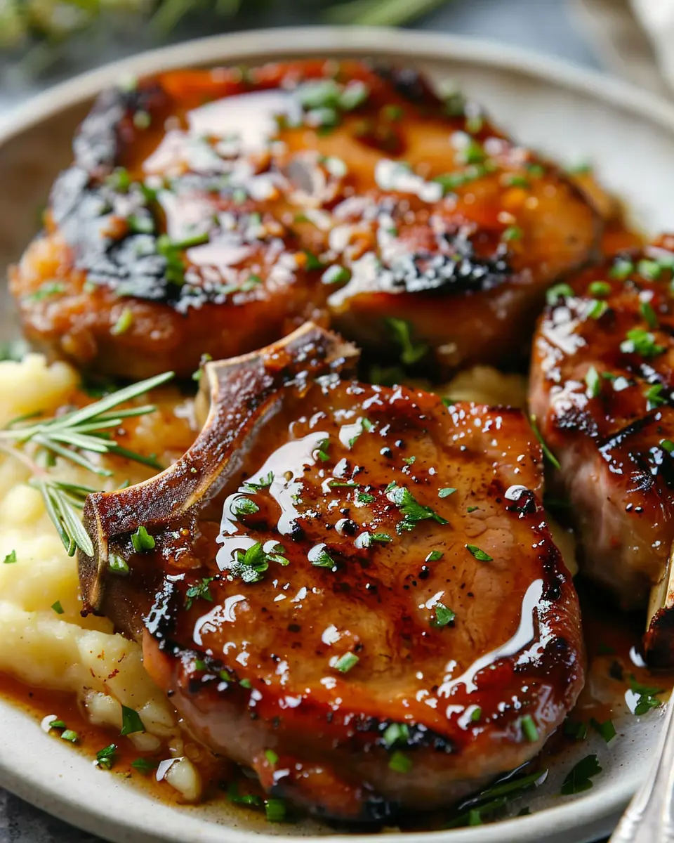 • Layer the Plate: Start with a base of mashed potatoes or sweet potatoes, then place the pork chops on top. Drizzle with the glaze for an appealing look.