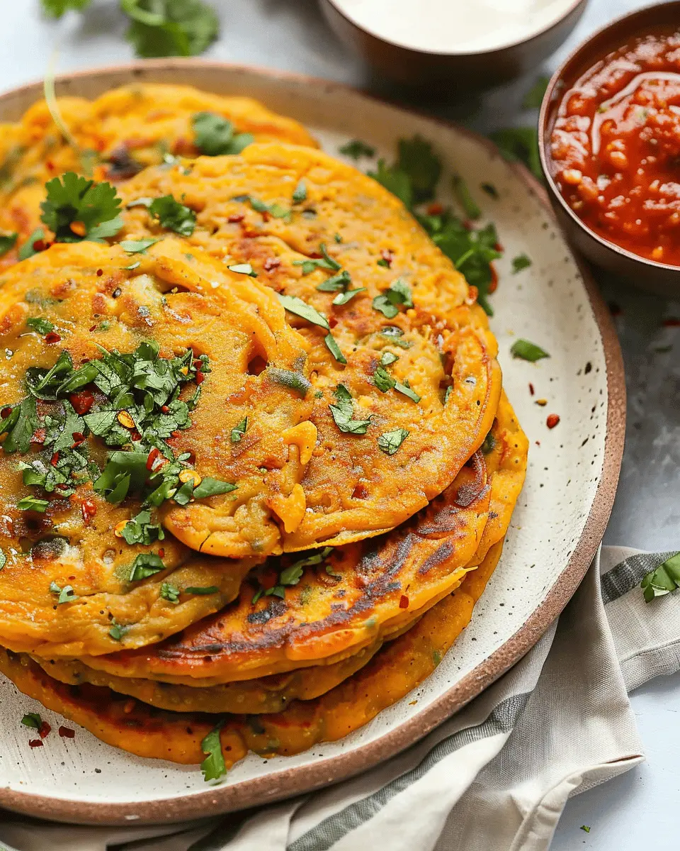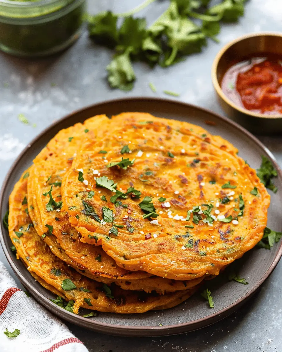 Serving Masoor Dal Chilla is where the fun begins! Elevate your savory pancakes with these delightful accompaniments. A fresh green chutney made with coriander, mint, and a squeeze of lemon can add a burst of flavor. For a creamy touch, pair it with plain yogurt or a spiced yogurt dip like raita. Want a little crunch? Add some sliced cucumbers or carrots on the side.