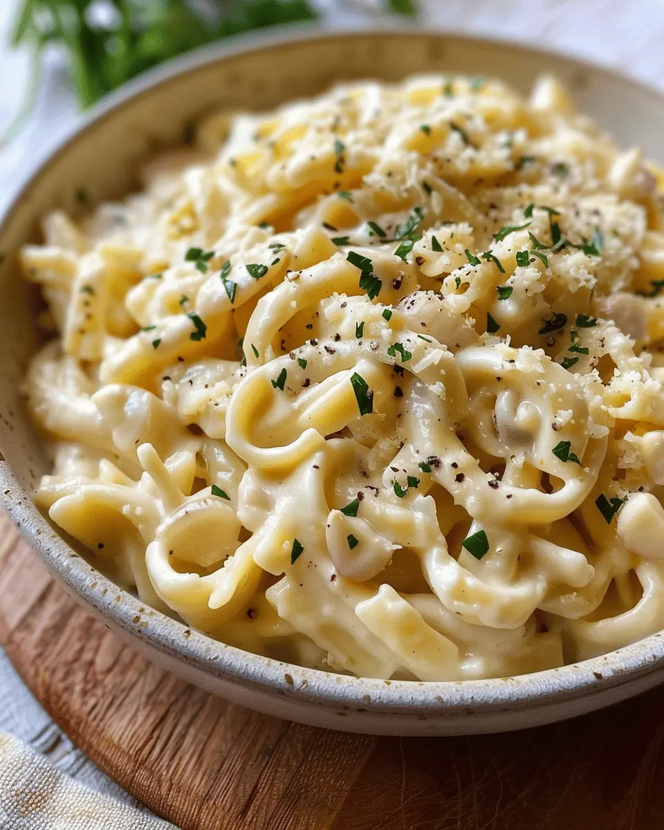 Presentation can transform your one pot creamy garlic pasta from casual to restaurant-worthy. Start by twirling the pasta into a nest shape in the center of your plate, using a fork for a refined touch. Add a sprinkle of freshly grated Parmesan cheese on top, followed by a few parsley leaves for color. A light drizzle of olive oil or a squeeze of lemon over the dish can enhance the aroma, making it irresistible.