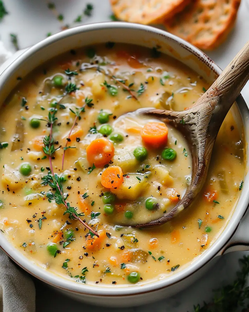 A comforting and creamy vegetable soup made in one pot for easy cleanup and delicious flavors.