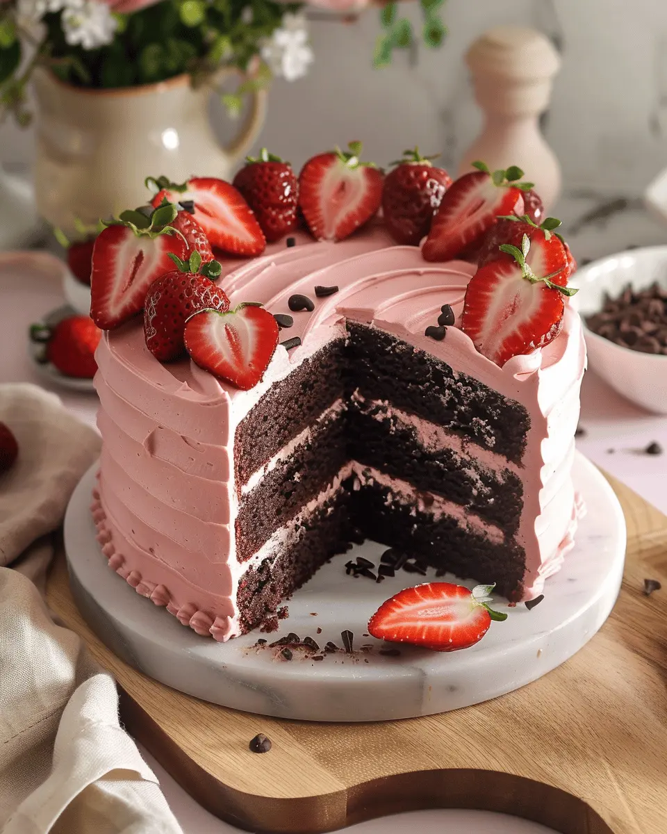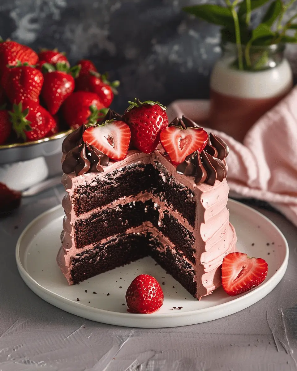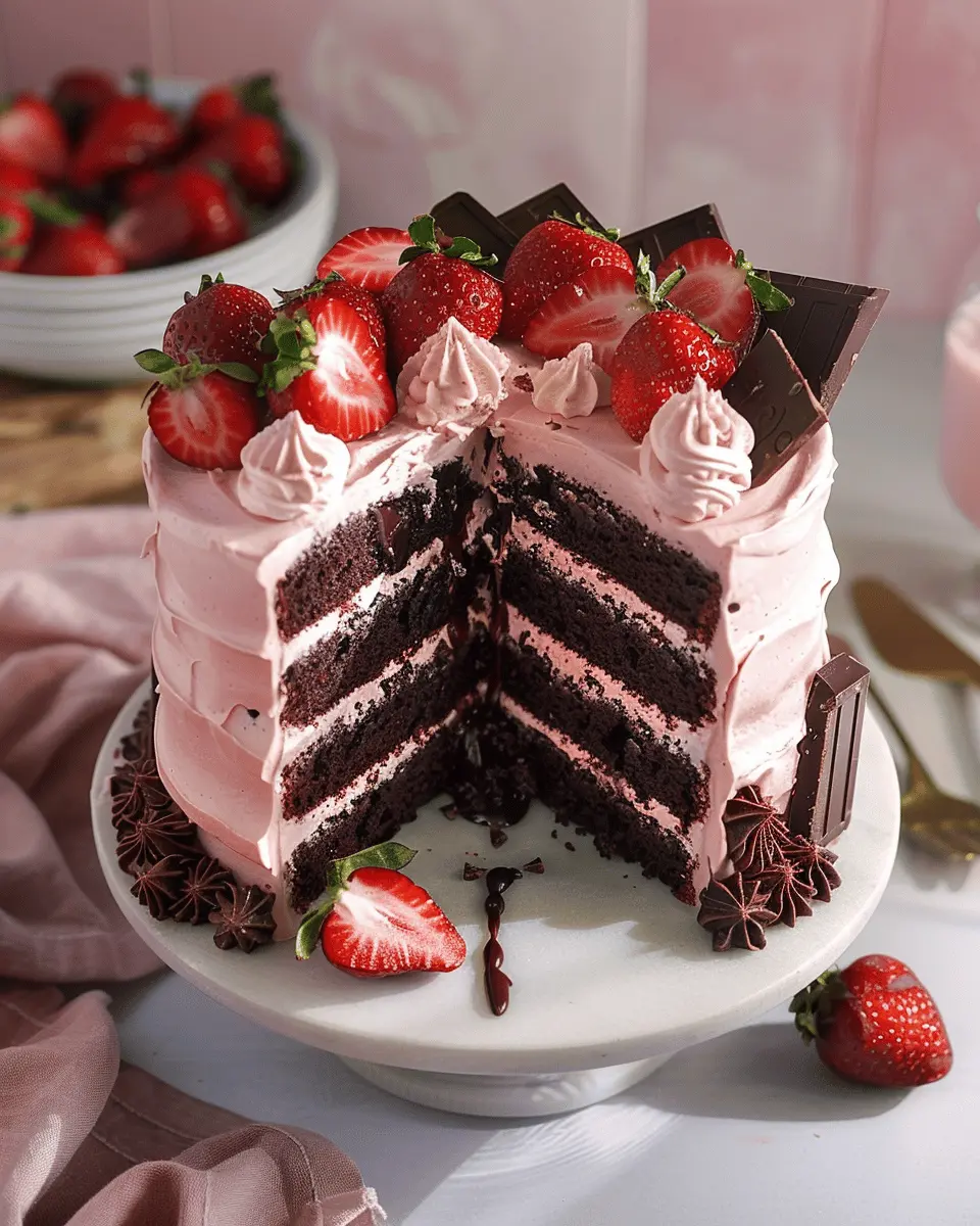 A delicious Strawberry Chocolate Cake that combines rich chocolate flavor with the freshness of strawberries.