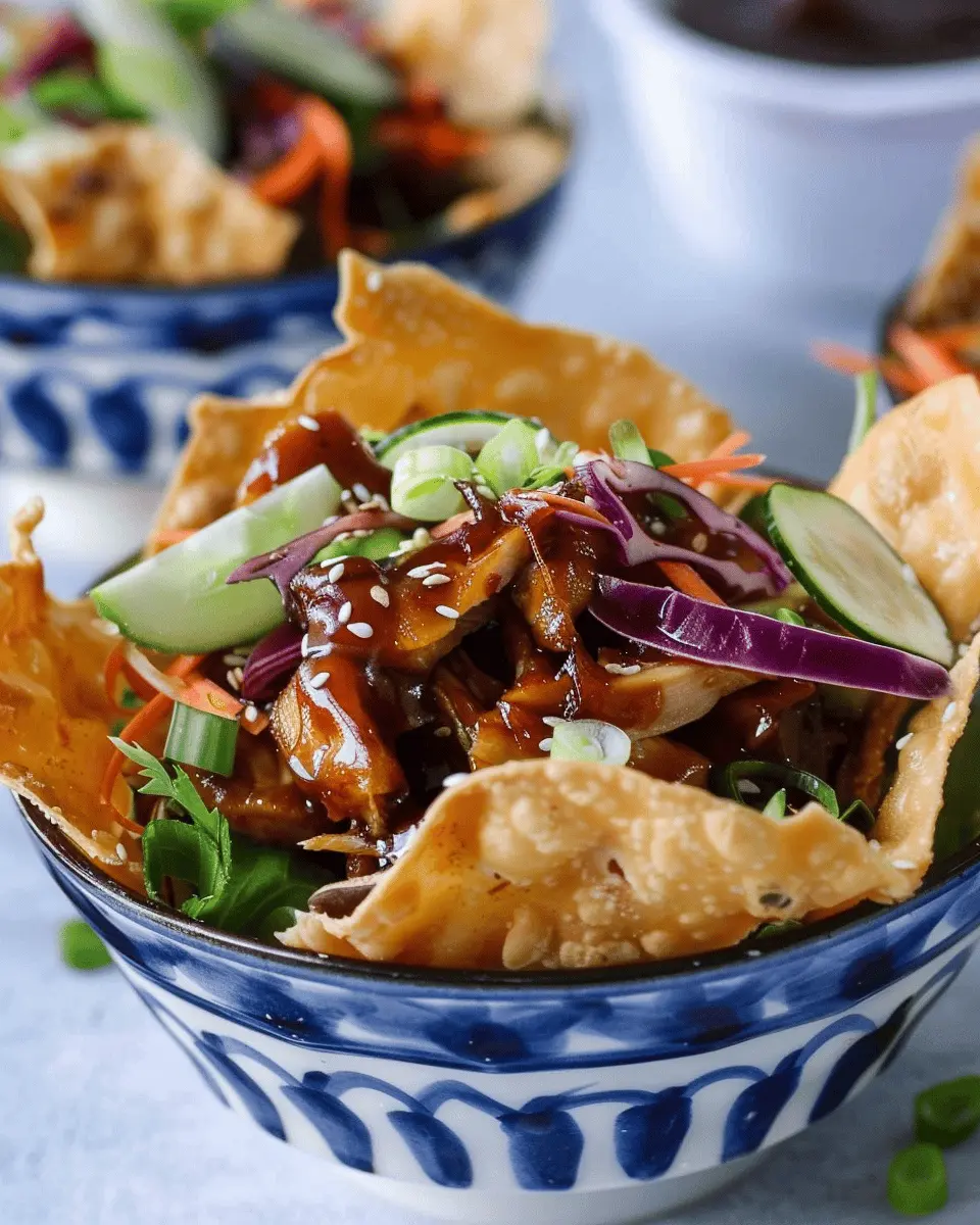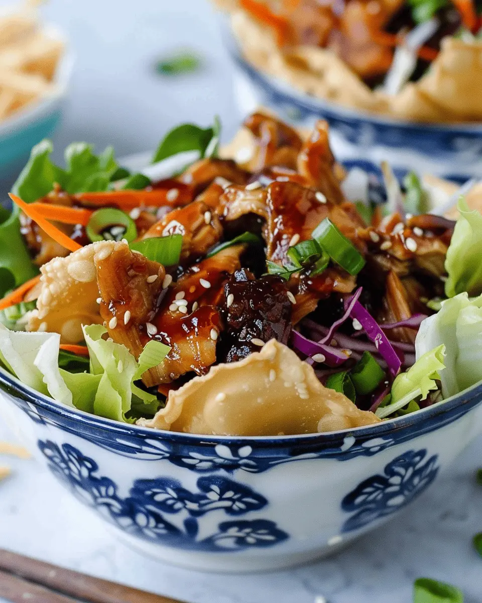 Delight your taste buds with these easy and flavorful Teriyaki Chicken Wonton Taco Bowls, perfect for any occasion.