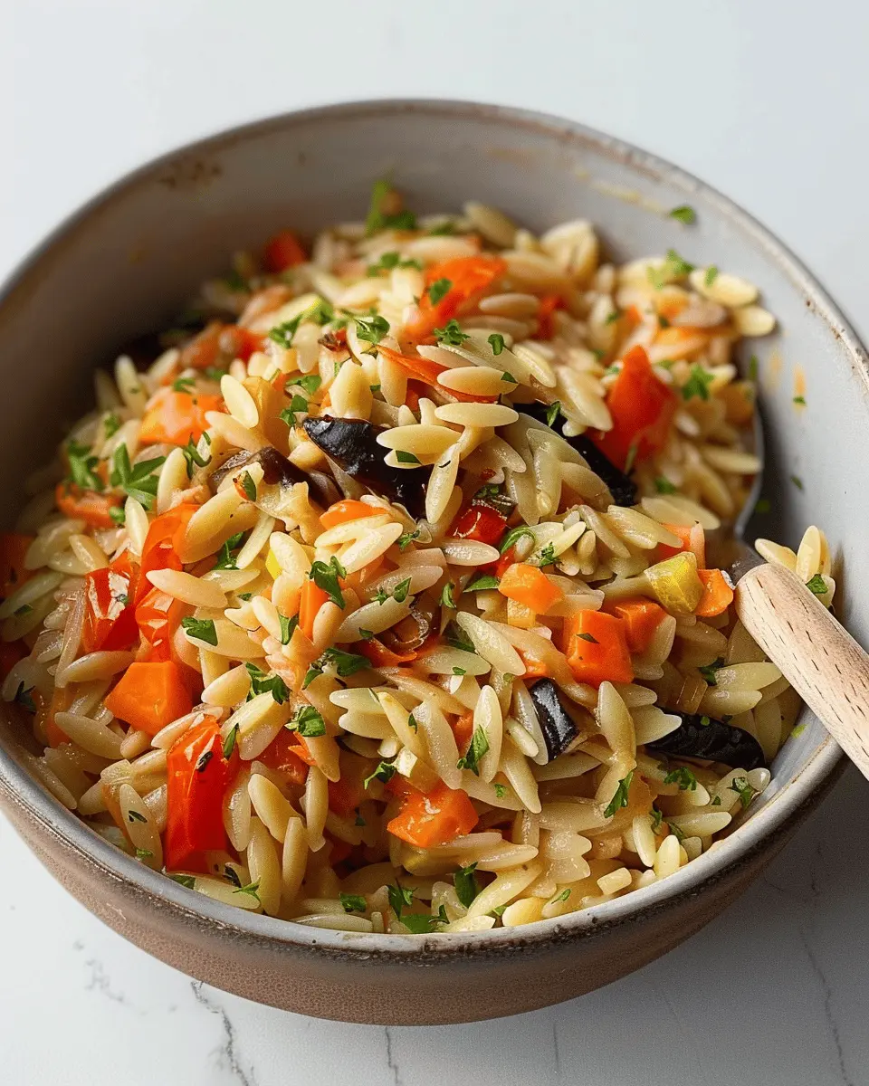 A delightful and easy recipe featuring orzo and a variety of vegetables, perfect for a flavorful meal.